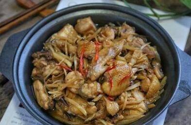 子姜洗净,切丝;鸡肉洗净砍块。