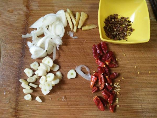 4、放配料炒香。