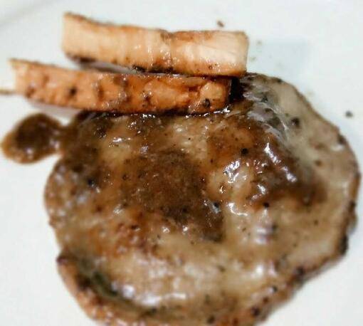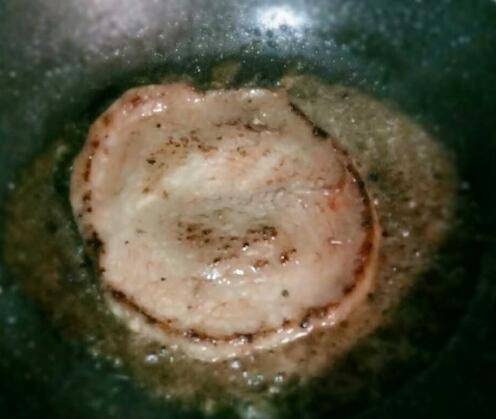 装盘,锅中会留有黑胡椒酱汁,可以放吐司片煎制。