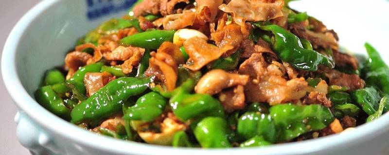 锅内不下油,干炒辣椒去水气,炒至稍软,盛出。