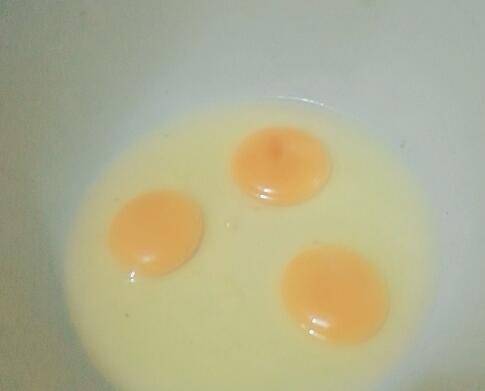 把牛奶挤一半或者三分之二放在鸡蛋里面,再用筷子快速搅拌成蛋液。