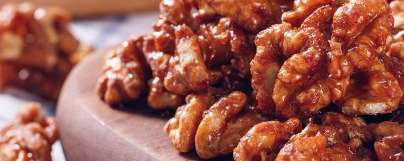 最佳答案1、准备食材:核桃仁125克、白糖5克、蜂蜜1毫升。2、把核桃仁放在开水中烫2至3分钟,之后取出晾干。3、将核桃仁放入烤箱中烤6分钟左右,注意翻一下,避免烤焦。4、锅中放水、白砂糖、白糖炒至冒泡就可以把核桃仁放入锅中。5、一直用筷子翻动核桃仁,以便都裹上糖浆,收干汁就可以盛出淋上蜂蜜即可。