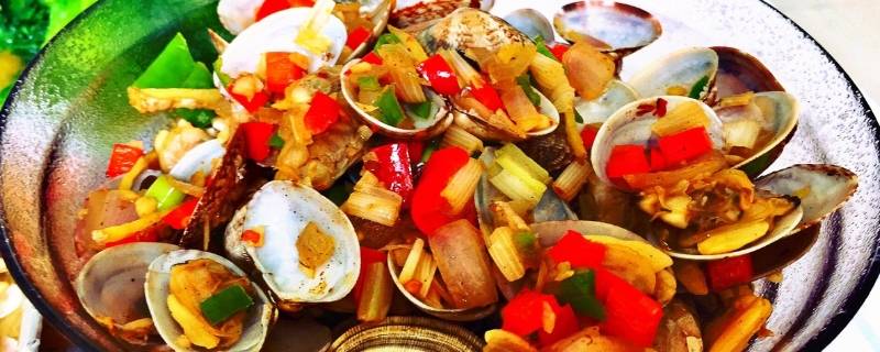 3、花贝壳提前用盐水浸泡一夜,洗净备用。