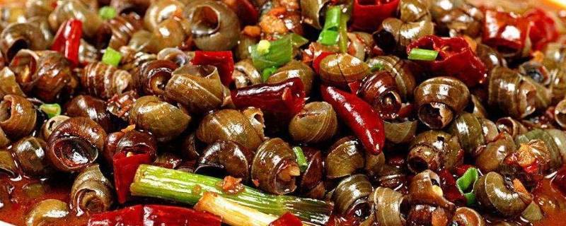 2、上高炒田螺:炒田螺是上高县著名小吃,是田螺与一种叫紫苏的芳香草炒制而成。炒时,还会放上辣椒、葱或蒜、豆豉、盐等调味料品,使其味道更佳。