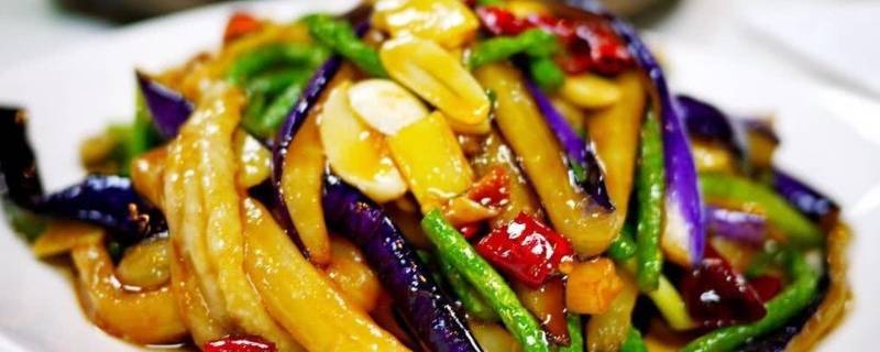 5、翻炒均匀,加入白糖、酱油、蚝油一同翻炒,茄子变软后起锅,装盘。
