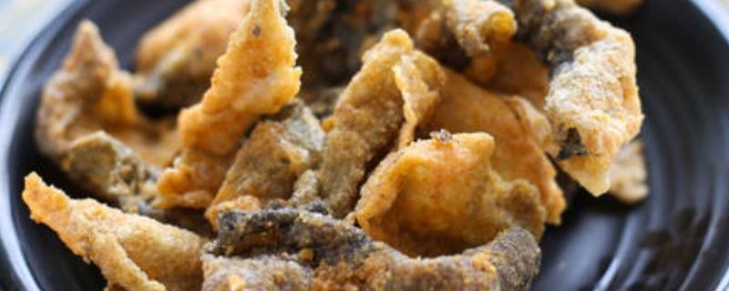 准备好新鲜的鱼皮并清洗干净。将清洗干净的鱼皮加入食用盐、八角、胡椒腌制。将准备好的蛋黄捣碎。将腌制好的鱼皮裹上淀粉和蛋黄。放入油锅炸至酥黄即可出锅。