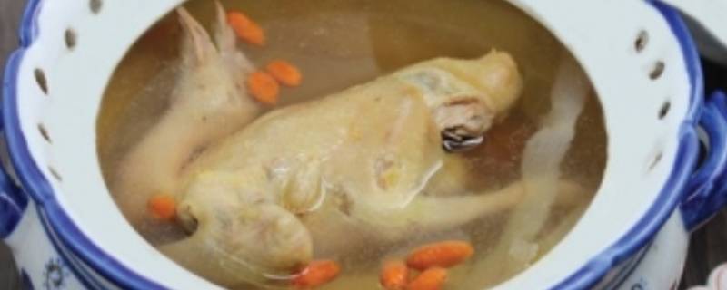 主料:鸽子1只。辅料:枸杞5克、党参10克、天麻5克、黄芪5克、白芷5克、苡米10克、莲子10克。