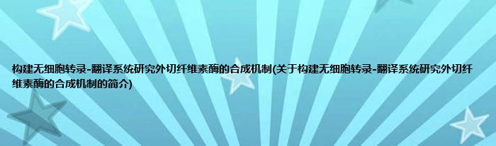 大家好,构建无细胞转录-翻译系统研究外切纤维素酶的合成机制,关于构建无细胞转录-翻译系统研究外切纤维素酶的合成机制的简介很多人还不知道,现在让我们一起来看看吧!