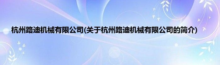 本文关于杭州路迪机械有限公司的简介就讲解完毕,希望对大家有所帮助。