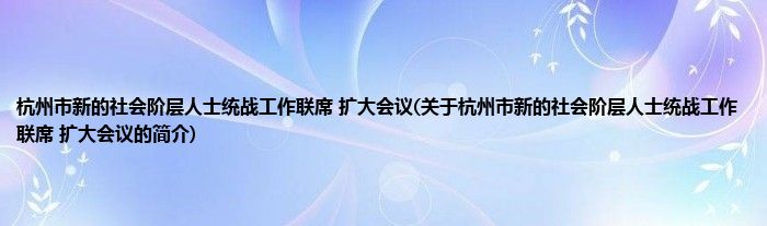 本文关于杭州市新的社会阶层人士统战工作联席 扩大会议的简介就讲解完毕,希望对大家有所帮助。