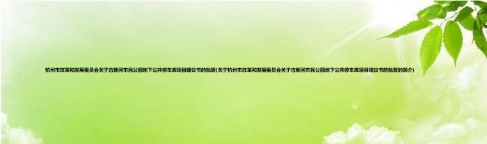 大家好,杭州市改革和发展委员会关于古新河市民公园地下公共停车库项目建议书的批复,关于杭州市改革和发展委员会关于古新河市民公园地下公共停车库项目建议书的批复的简介很多人还不知道,现在让我们一起来看看吧!