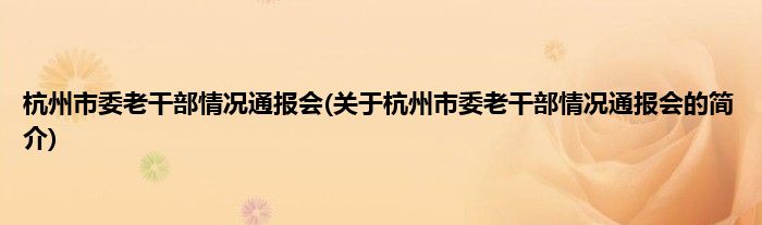 本文关于杭州市委老干部情况通报会的简介就讲解完毕,希望对大家有所帮助。