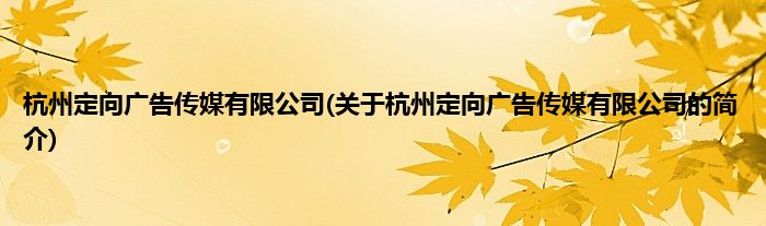 本文关于杭州定向广告传媒有限公司的简介就讲解完毕,希望对大家有所帮助。