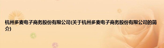 本文关于杭州多麦电子商务股份有限公司的简介就讲解完毕,希望对大家有所帮助。