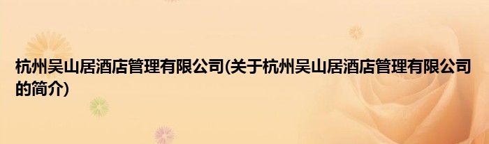 本文关于杭州吴山居酒店管理有限公司的简介就讲解完毕,希望对大家有所帮助。