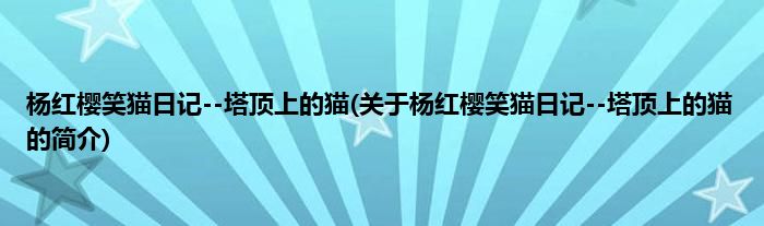 1、 《杨红樱笑猫日记--塔顶上的猫》是2017年6月1日明天出版社出版的图书,作者是杨红樱。