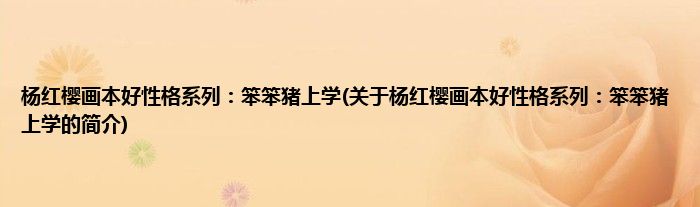 1、 《杨红樱画本·好性格系列:笨笨猪上学》系杨红樱画本·好性格系列。