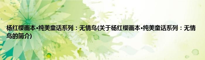 1、 《杨红樱画本·纯美童话系列:无情鸟》由杨红樱所著,这是一则美丽的童话,同时也给孩子们讲了许多的科学知识。