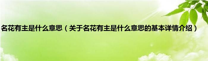 本文关于名花有主是什么意思的基本详情介绍就讲解完毕,希望对大家有所帮助。
