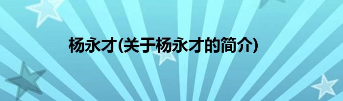 本文关于杨永才的简介就讲解完毕,希望对大家有所帮助。