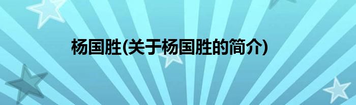 大家好,杨国胜,关于杨国胜的简介很多人还不知道,现在让我们一起来看看吧!