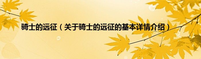 本文关于骑士的远征的基本详情介绍就讲解完毕,希望对大家有所帮助。