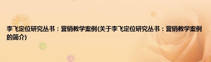 本文关于李飞定位研究丛书:营销教学案例的简介就讲解完毕,希望对大家有所帮助。
