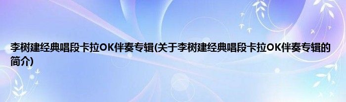 李树建经典唱段卡拉OK伴奏专辑(关于李树建经典唱段卡拉OK伴奏专辑的简介)