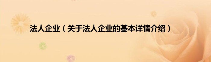 本文关于法人企业的基本详情介绍就讲解完毕,希望对大家有所帮助。