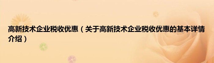 本文关于高新技术企业税收优惠的基本详情介绍就讲解完毕,希望对大家有所帮助。
