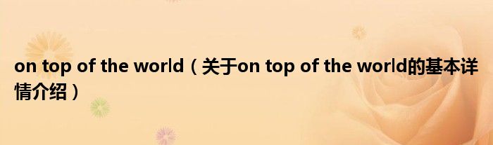 本文关于on top of the world的基本详情介绍就讲解完毕,希望对大家有所帮助。