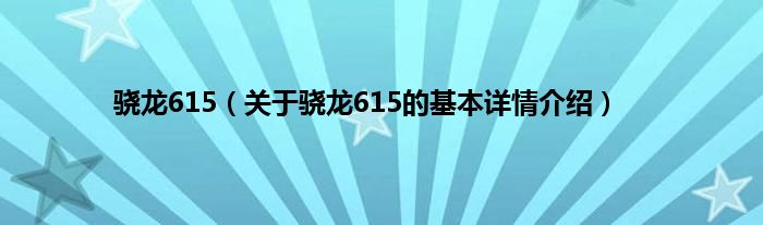 本文关于骁龙615的基本详情介绍就讲解完毕,希望对大家有所帮助。