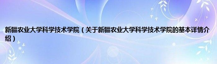 本文关于新疆农业大学科学技术学院的基本详情介绍就讲解完毕,希望对大家有所帮助。
