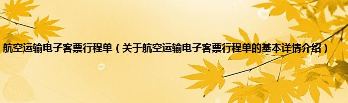 本文关于航空运输电子客票行程单的基本详情介绍就讲解完毕,希望对大家有所帮助。