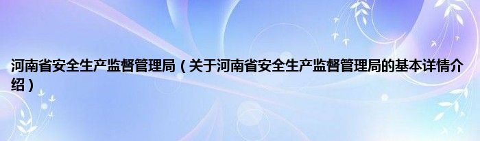 本文关于河南省安全生产监督管理局的基本详情介绍就讲解完毕,希望对大家有所帮助。