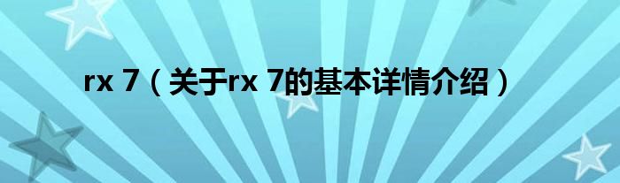 本文关于rx 7的基本详情介绍就讲解完毕,希望对大家有所帮助。