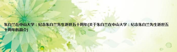 本文关于朱白兰在中山大学:纪念朱白兰先生逝世五十周年的简介就讲解完毕,希望对大家有所帮助。