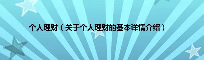 本文关于个人理财的基本详情介绍就讲解完毕,希望对大家有所帮助。