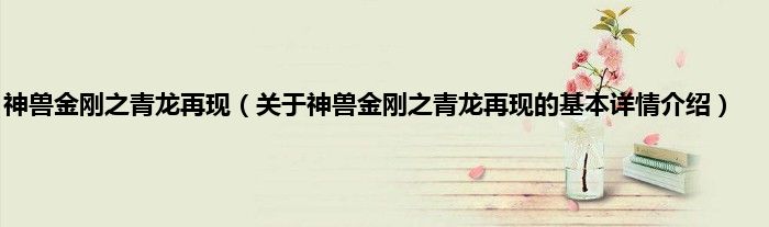 本文关于神兽金刚之青龙再现的基本详情介绍就讲解完毕,希望对大家有所帮助。