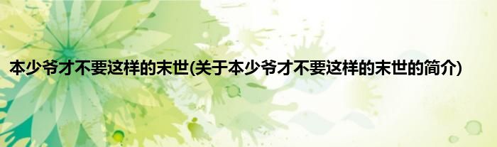 大家好,本少爷才不要这样的末世,关于本少爷才不要这样的末世的简介很多人还不知道,现在让我们一起来看看吧!