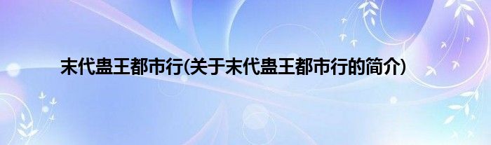 本文关于末代蛊王都市行的简介就讲解完毕,希望对大家有所帮助。