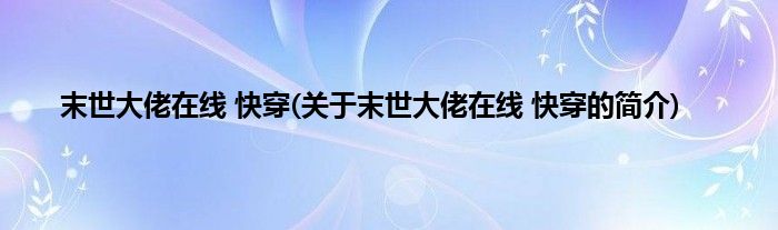 大家好,末世大佬在线 快穿,关于末世大佬在线 快穿的简介很多人还不知道,现在让我们一起来看看吧!