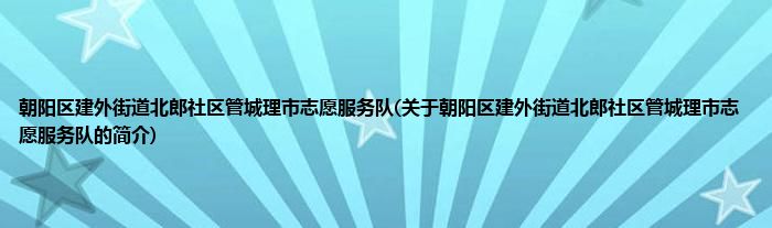 本文关于朝阳区建外街道北郎社区管城理市志愿服务队的简介就讲解完毕,希望对大家有所帮助。