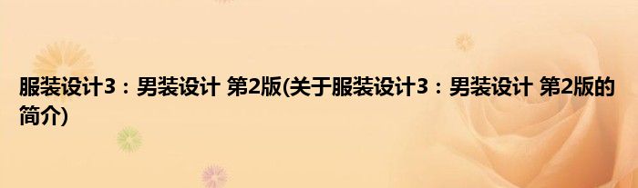 本文关于服装设计3:男装设计 第2版的简介就讲解完毕,希望对大家有所帮助。