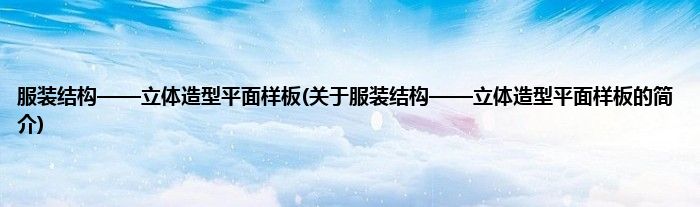 本文关于服装结构——立体造型平面样板的简介就讲解完毕,希望对大家有所帮助。