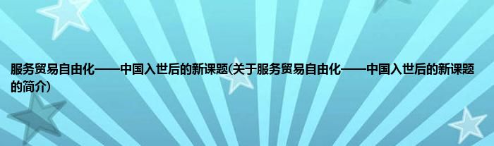大家好,服务贸易自由化——中国入世后的新课题,关于服务贸易自由化——中国入世后的新课题的简介很多人还不知道,现在让我们一起来看看吧!