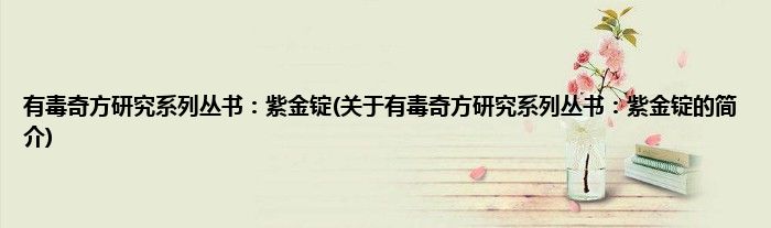 本文关于有毒奇方研究系列丛书:紫金锭的简介就讲解完毕,希望对大家有所帮助。