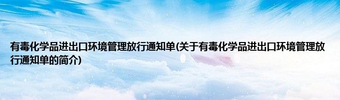 大家好,有毒化学品进出口环境管理放行通知单,关于有毒化学品进出口环境管理放行通知单的简介很多人还不知道,现在让我们一起来看看吧!