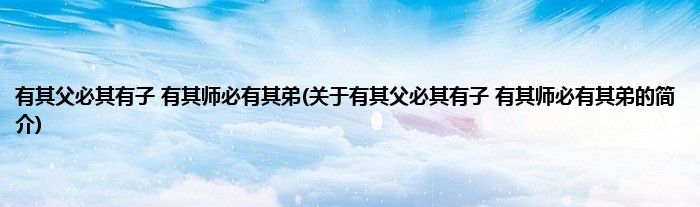 本文关于有其父必其有子,有其师必有其弟的简介就讲解完毕,希望对大家有所帮助。