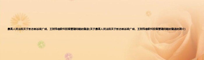 大家好,最高人民法院关于彭志新诉梁广成、王树伟借款纠纷案管辖问题的复函,关于最高人民法院关于彭志新诉梁广成、王树伟借款纠纷案管辖问题的复函的简介很多人还不知道,现在让我们一起来看看吧!